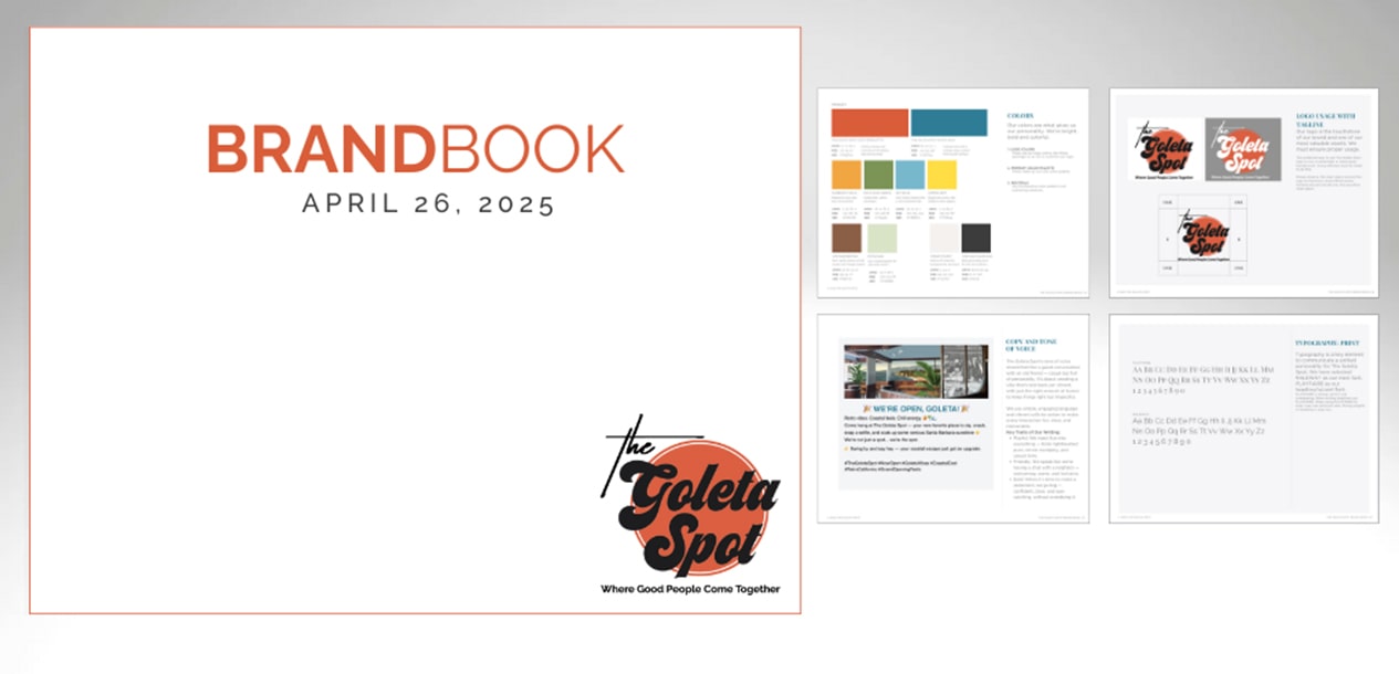 I designed The Goleta Spot’s Brand Style Guide, ensuring that it visually aligns with both its unique location and the surrounding community. By blending coastal elements with a retro yet modern aesthetic, I crafted a visual identity that reflects the laid-back, vibrant spirit of Goleta. This style guide serves as the foundation for maintaining consistency across all branding materials, from the website to the restaurant, helping the business build a cohesive and recognizable presence as it grows within the local community.